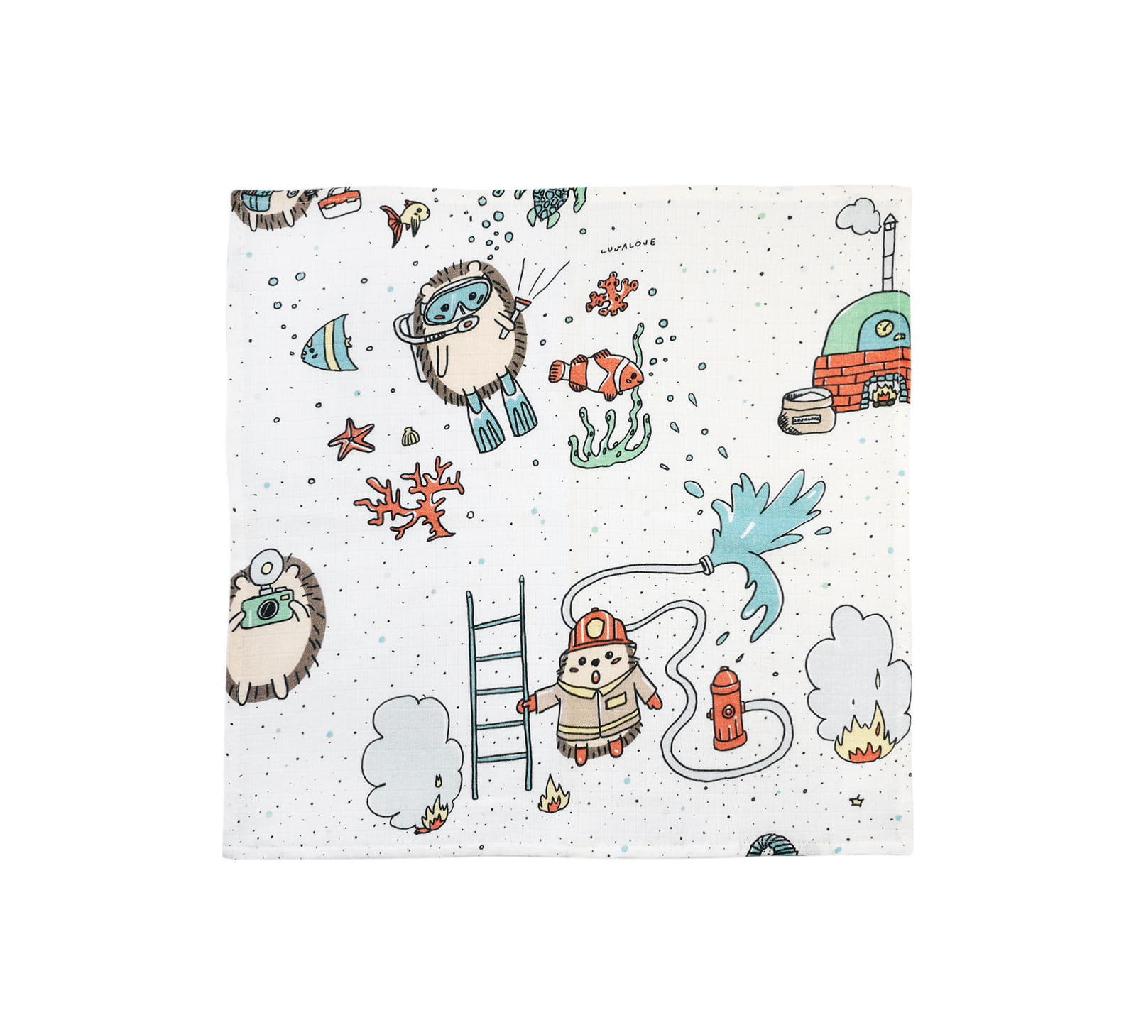 Muślinowa myjka ok 40x40 cm. 60% wiskoza z bambusa 40% bawełna. Myjka dostępna w różnych wzorach. Istnieje możliwość dokupienia otulacza oraz poduszki w pasujące wzory. Surowce, z których wykonano produkt posiadają najwyższy certyfikat Oeko-Tex standard 100, gwarantujący bezpieczeństwo używania produktu przez niemowlęta. Myjkę należy prać w pralce w temperaturze 40 stopni.
