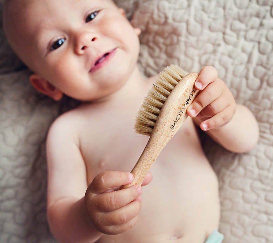 Małych rozmiarów szczotka z naturalnym włosiem o idealnym stopniu twardości dostosowanym do skóry dzieci. Doskonale wyczesuje i masuje skórę głowy pomagając przy ciemieniusze. Pomocna przy rozczesywaniu kołtunów. W komplecie ze szczotką delikatną, muślinową myjką, która sprawdzi się w codziennej pielęgnacji Maluszka.