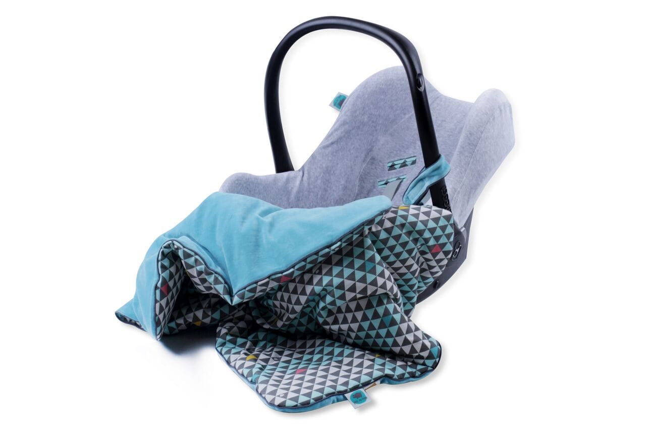 Puszysty, dwustronny kocyk zaprojektowany z myślą o spacerach w wózku. Wykonany z wysokiej jakości materiałów - z jednej strony milutki welur w kolorze turkusowym, z drugiej strony bawełna w efektowne trójkąty, a całość ładnie wykończona szarą wypustką. Wypełniony antyalergiczną włókniną, która sprawia, że kocyk jest ciepły, ale lekki i miękki. Optymalny rozmiar pozwala swobodnie okryć dziecko, a dzięki sprytnemu zapięciu, łatwo przypniesz kocyk do wózka i nigdy go nie zgubisz. Życzymy długich, przyjemnych spacerów…